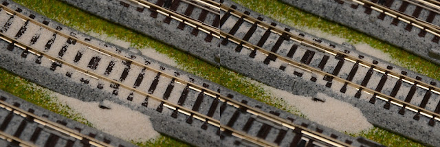 Test #2 - wet cleaning mode. Again the left and the right pictures show the same piece of track before and after the procedure. Not much difference there, right? Like I said - my layout was never really dirty :)